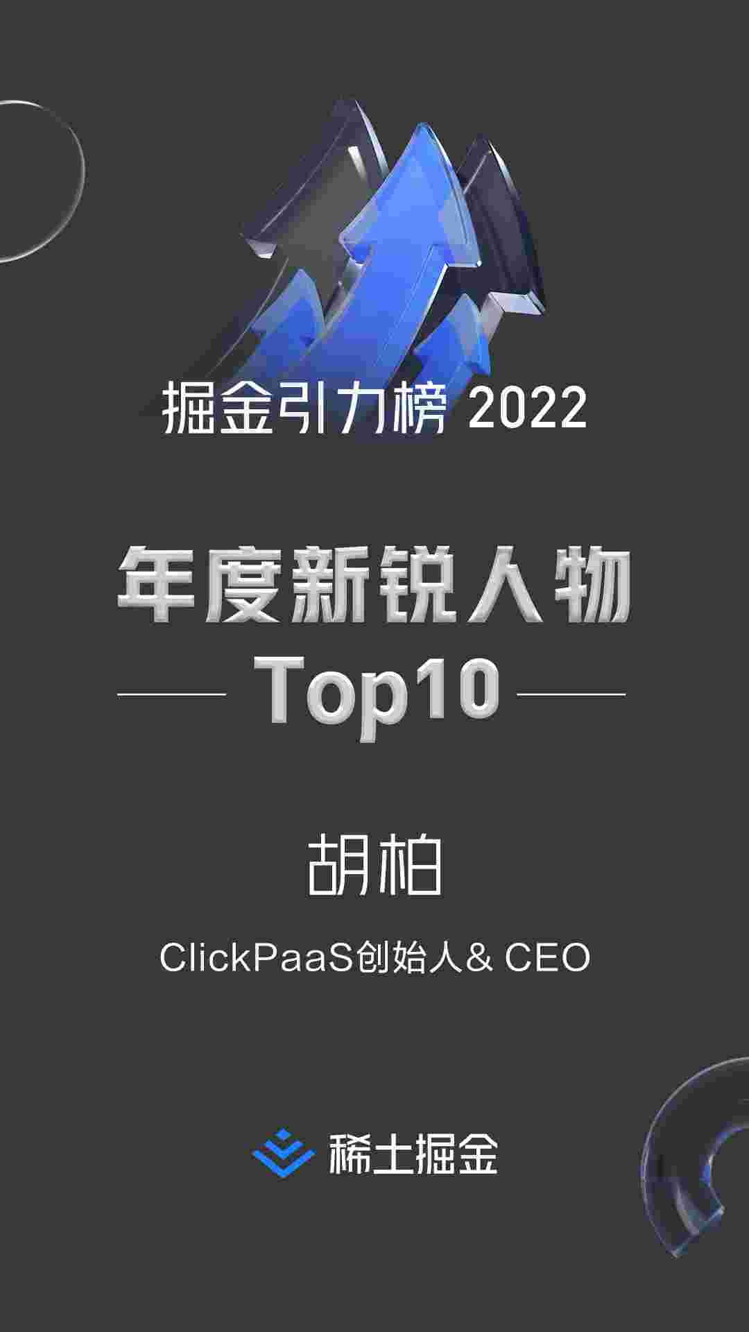 2022年1月6日,,,,稀土掘金社区第一届「掘金未来大会」成功举办,,会上发布了“2022 稀土掘金引力榜 年度新锐人物”榜单,,,上海爱湃斯科技有限公司(简称沃钱包)创始人及CEO胡柏实力入选年度新锐人物TOP 10。。。。