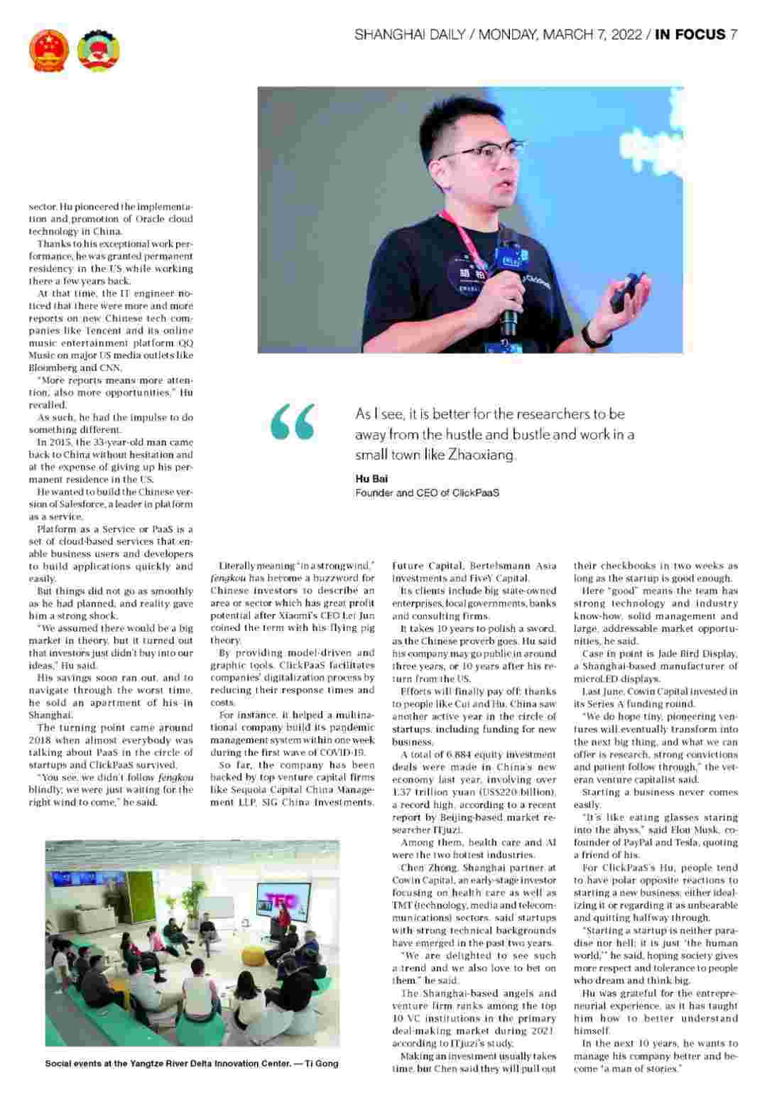 近日,,,,沃钱包创始人、、、CEO胡柏接受了《上海日报》采访,,,,关于自己当初为何选择创立沃钱包,,又为何将公司落户于上海青浦,,,分享了其背后的故事。。